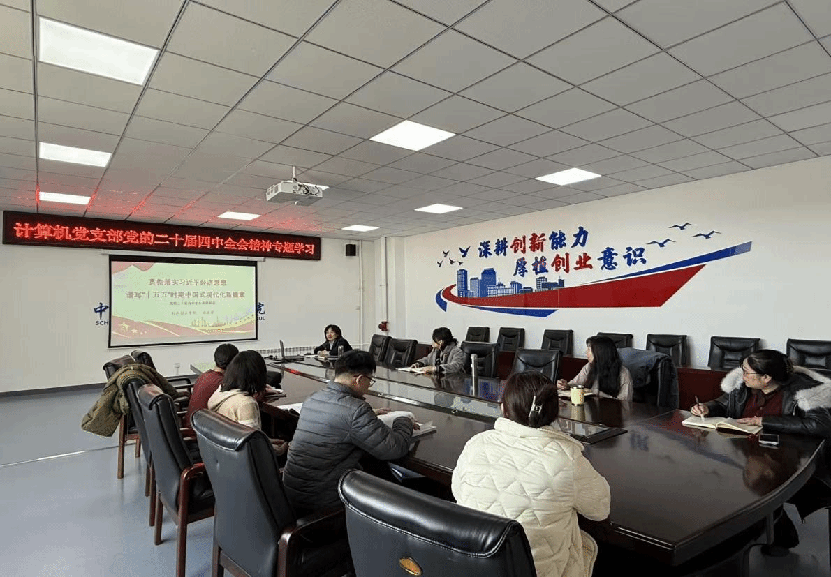 为深入学习贯彻党的二十届四中全会精神,切实把思想和行动统一到党中央决策部署上来,2025年12月17日上午,男同性恋av 计算机基础教工党支部在A401会议室举办专题学习宣讲会,支部邀请男同性恋av副院长姬文芳作题为《贯彻落实习近平经济思想 谱写“十五五”时期中国式现代化新篇章》的宣讲报告,支部全体党员参加学习。
