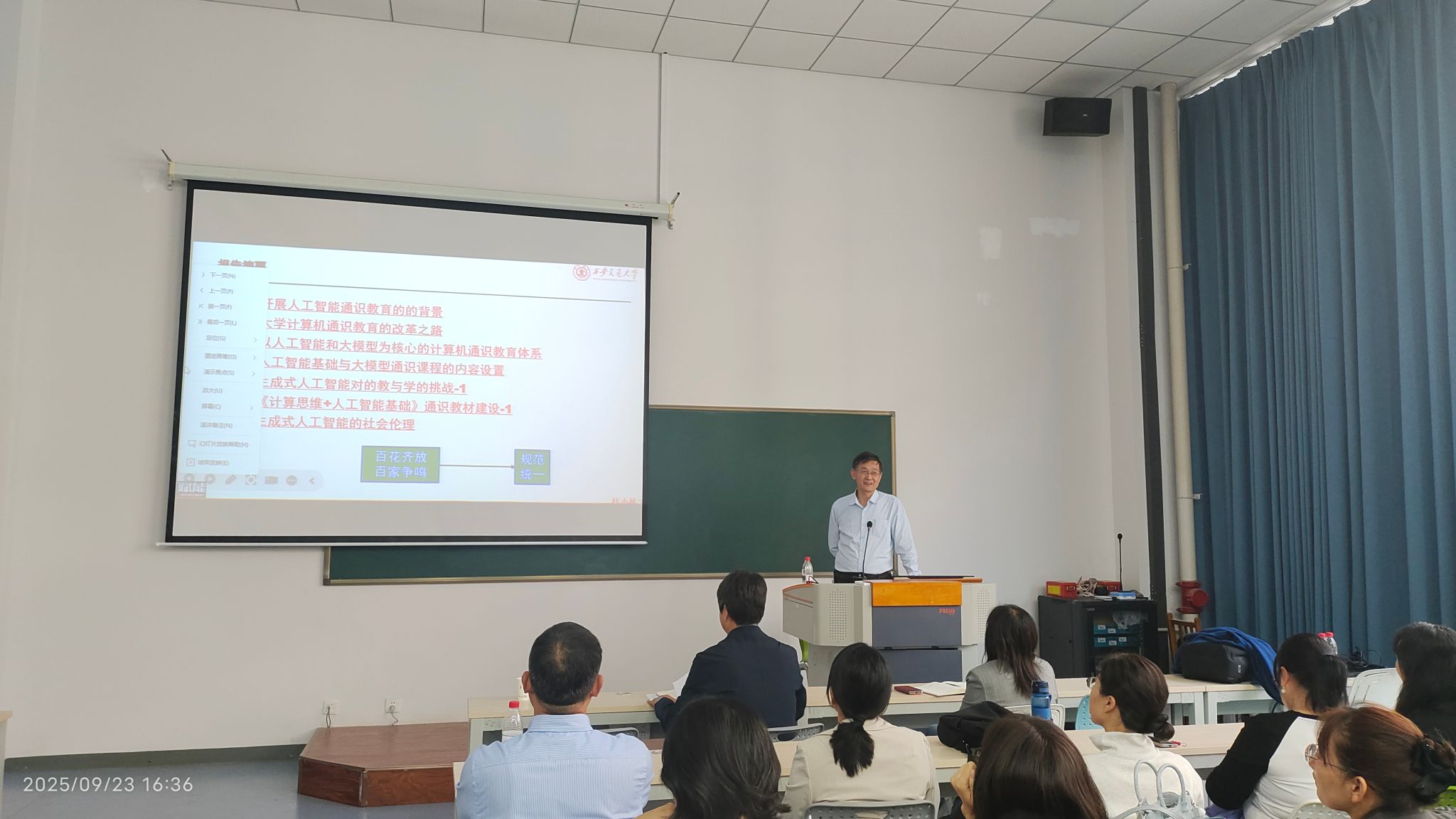 邀请西安交通大学桂小林教授做了“深入推进以人工智能和大模型为核心的计算机通识教育”的专题讲座,曹凤才院长主持,男同性恋av教师和部分学生代表参加了本次讲座。