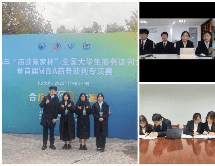 11月9日,2025年 “商谈赢家杯” 全国大学生商务谈判大赛暨首届 MBA 商务谈判专项赛在长安大学圆满落幕。我校“Deal 4 sure”、“商海罗盘”和“谈定了!”三队参加比赛,其中“Deal 4 sure”是线下现场赛队伍,其余两组是网络赛队伍。在各位指导老师的精心指导下,三支队伍在大赛中获得优异成绩。